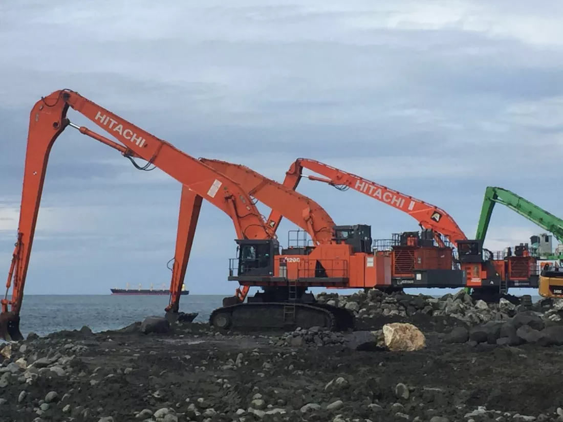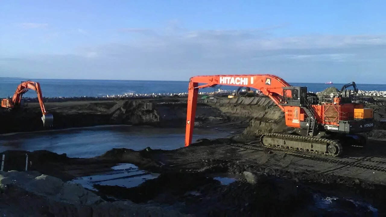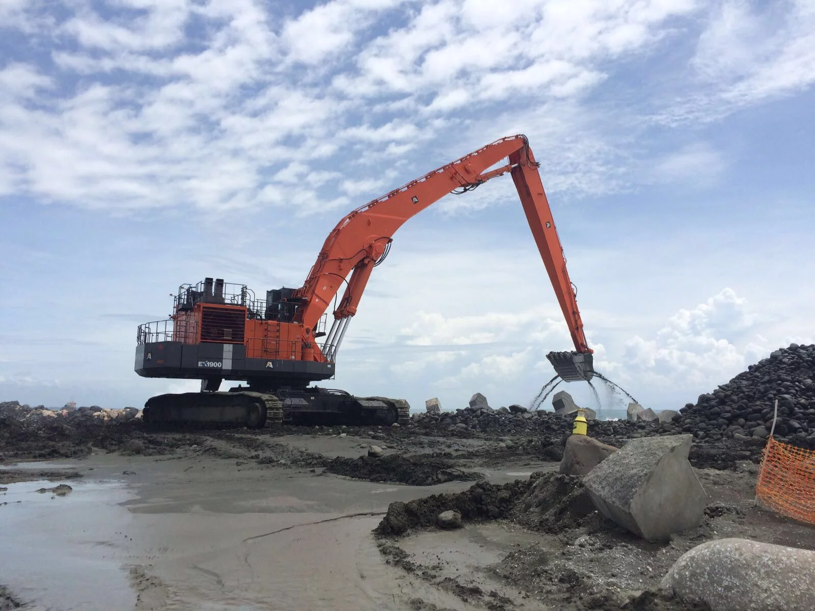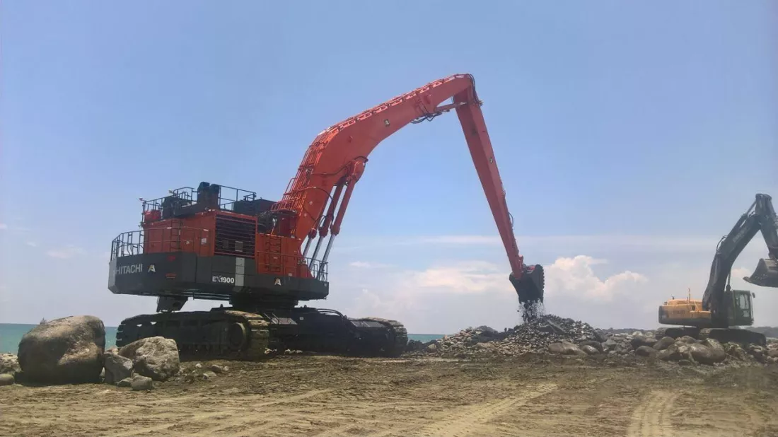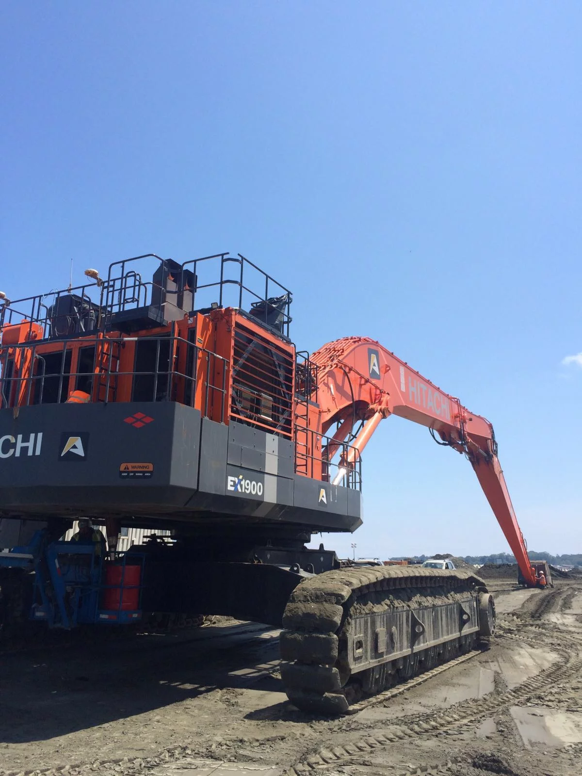 Friday, June 16, 2017An amazing jobsite with 2 units EX1900 and 3 units EX1200 all equipped with Super Long Fronts upto 40 meter reach.
