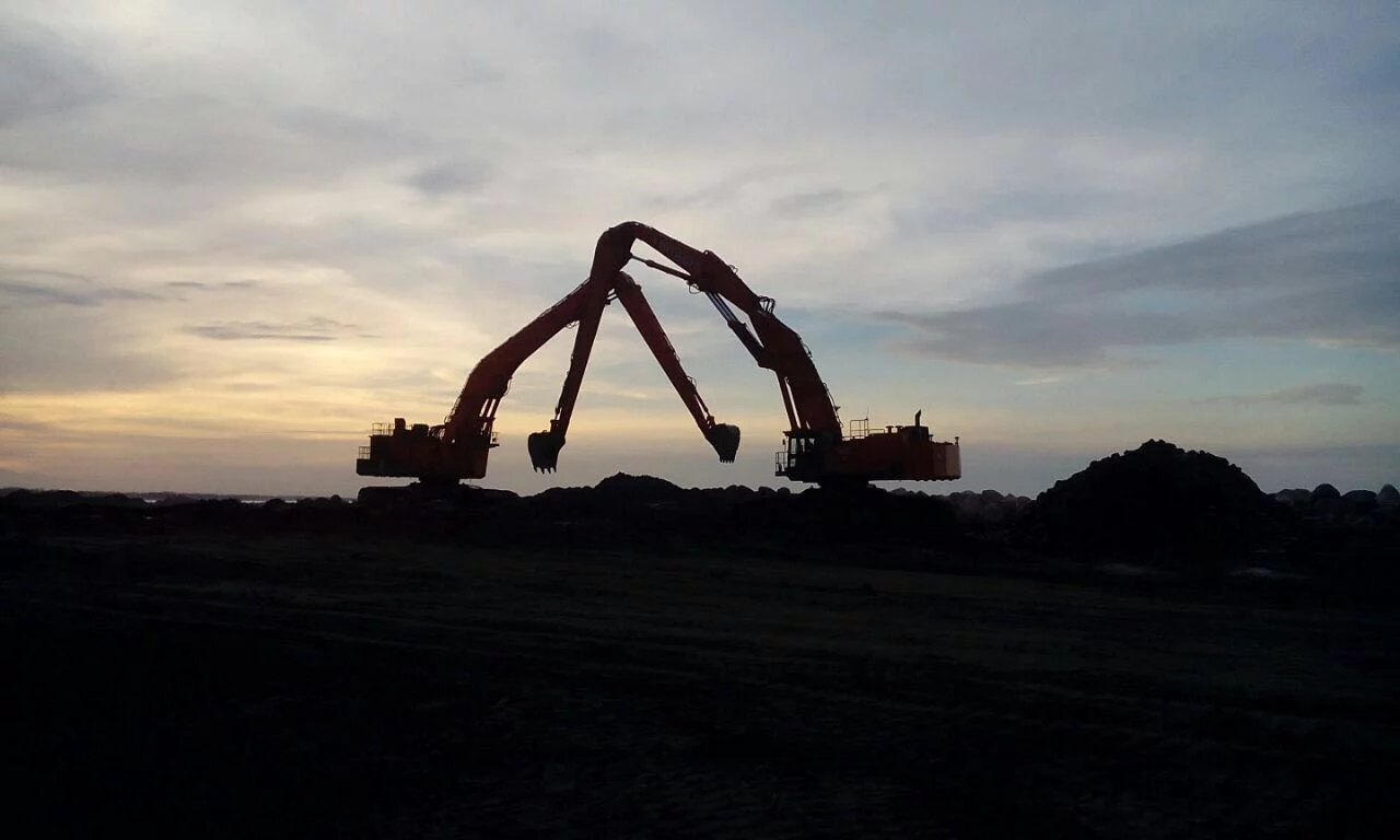 An amazing jobsite with 2 units EX1900 and 3 units EX1200 all equipped with Super Long Fronts upto 40 meter reach.