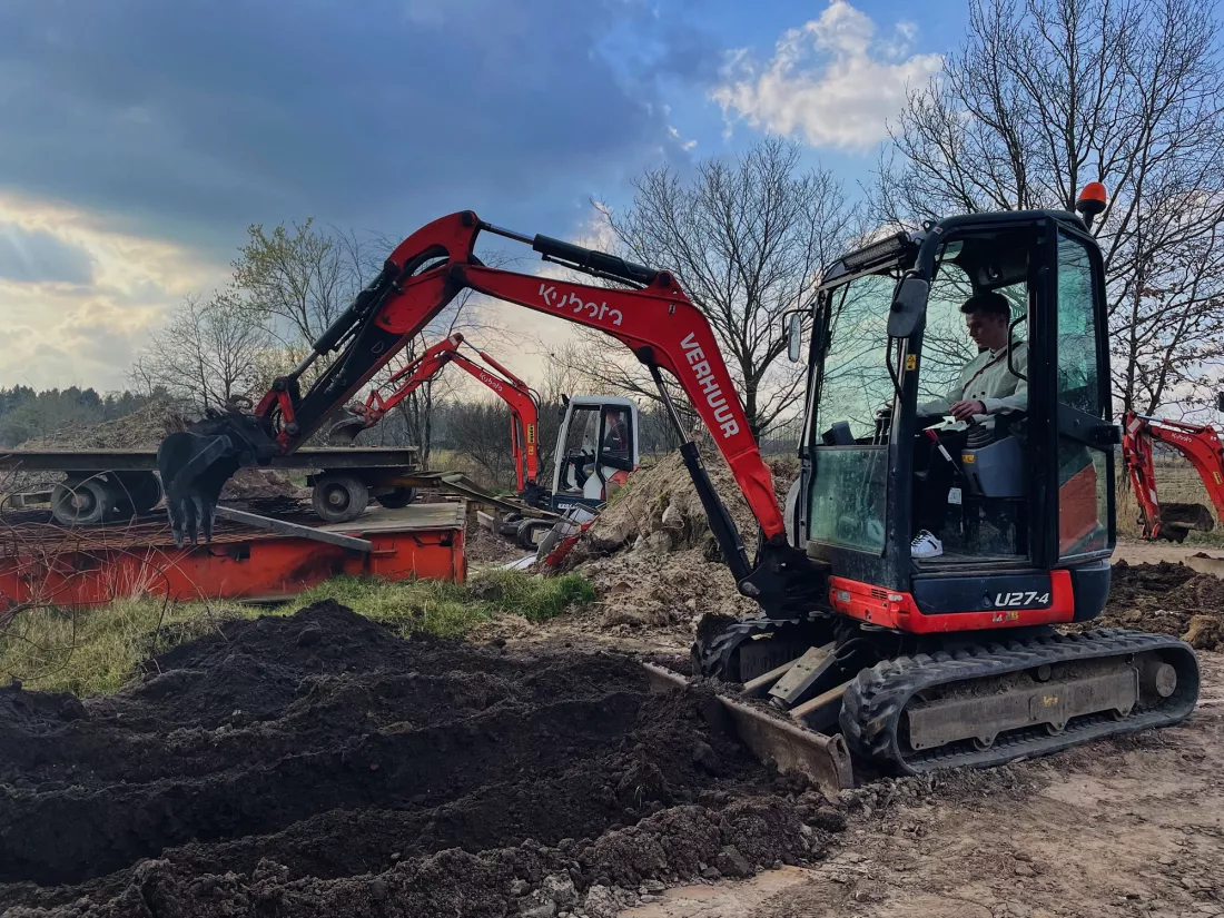 The large group of students was divided into two, and they were given an insight into our company thanks to our company film and a tour of the company. Afterwards, they were allowed to put their acquired knowledge and experience into practice during a demo moment. The students were able to operate a Kubota mini excavator. According to the students, this was the icing on the cake.