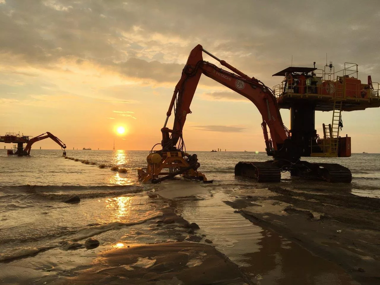 In the pictures, the 3 Starfish excavators (1 x MA200 and 2 x ZX870) are at work. They are used for digging in the electricity cables.
