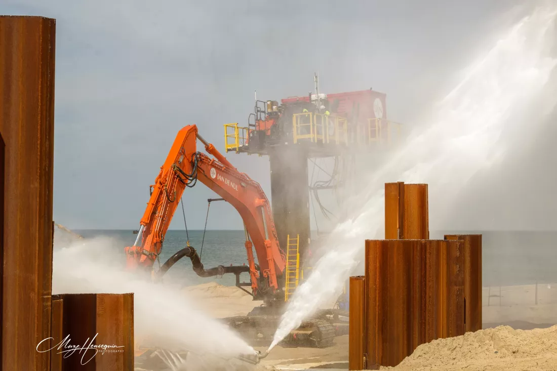 The JDN offshore vessel CONNECTOR brought the cables from the wind turbines at sea to a depth of approximately 8 metres. From that point, the Starfish machines took over: they dug the cables further inland and assisted in pulling the cables towards the transformer park in LEMUIG, where the connection to the substation takes place.