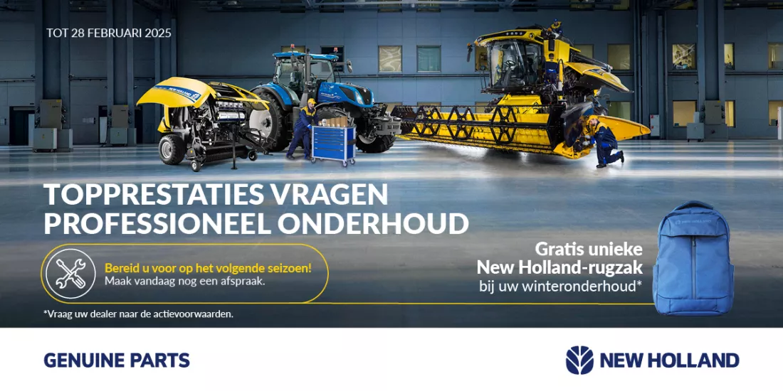 Nice bonus: with a service this winter, you will receive a free exclusive New Holland backpack, only available during our winter promotion!