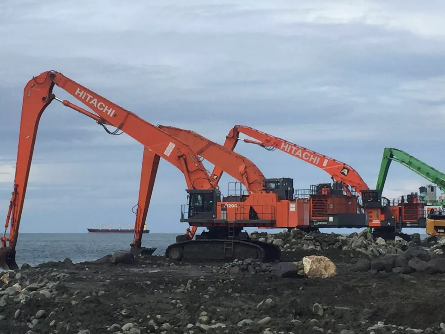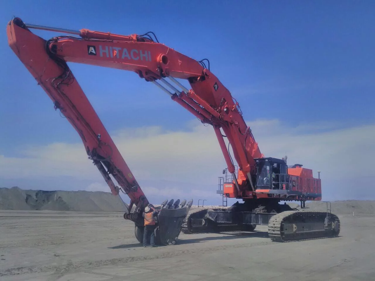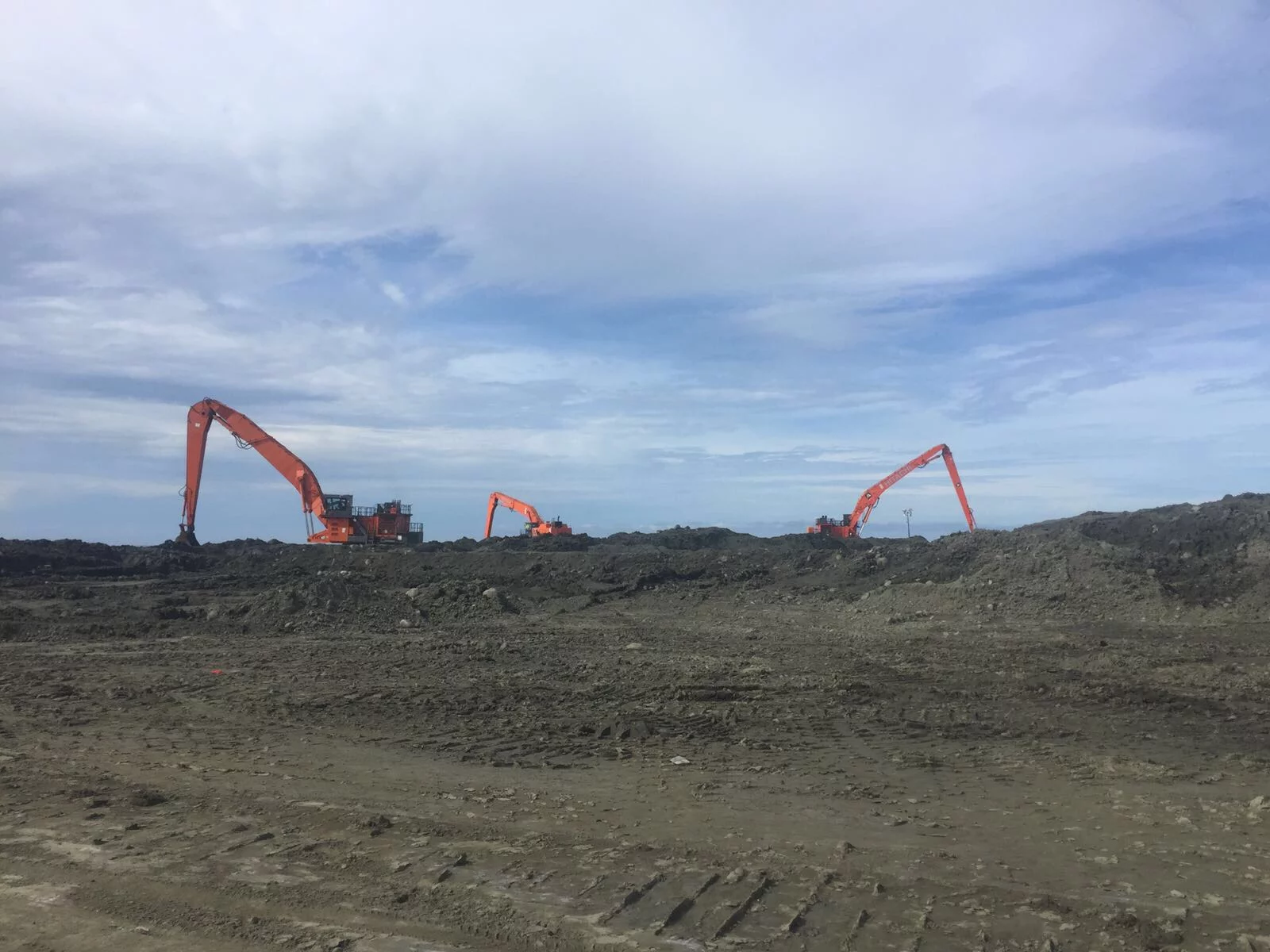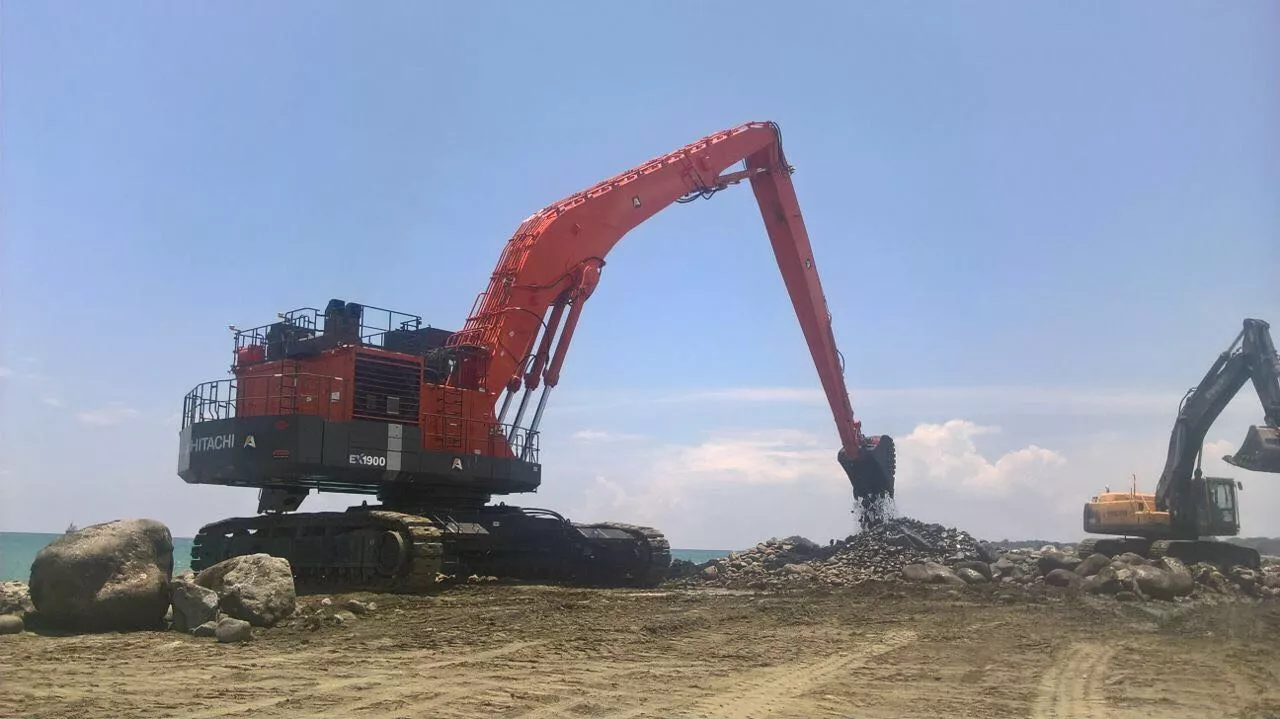 vendredi 16 juin 2017Un jobsite impressionant avec 2 machines EX1900 et 3 machines EX1200, toutes équipées de Super Long Fronts jusqu'à 40 mètres.