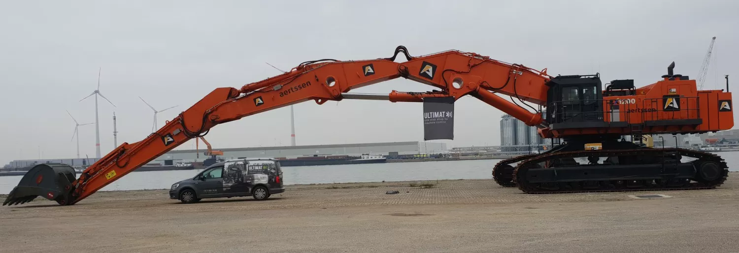 Ce ‘grizzly’ est une machine de 170 tonnes avec une longueur de bras de 25 mètres ! En collaboration avec les collègues engineering de Luyckx, Ultimated a développé un ‘submersible kit’ qui protège les capteurs et le câblage avec des boîtiers et conduites en acier inoxydable.