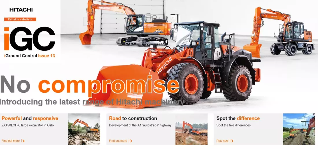 vendredi 25 août 2017Edition 13 présente la nouvelle gamme de pelles Zaxis-6 et de chargeuses sur pneus ZW-6 s’enorgueillit d’être « sans compromis ». Cela démontre que vous pouvez en exiger davantage des équipements Hitachi, y compris leur coût global, qui est le plus bas, et leur durabilité, fiabilité et polyvalence exceptionnels.