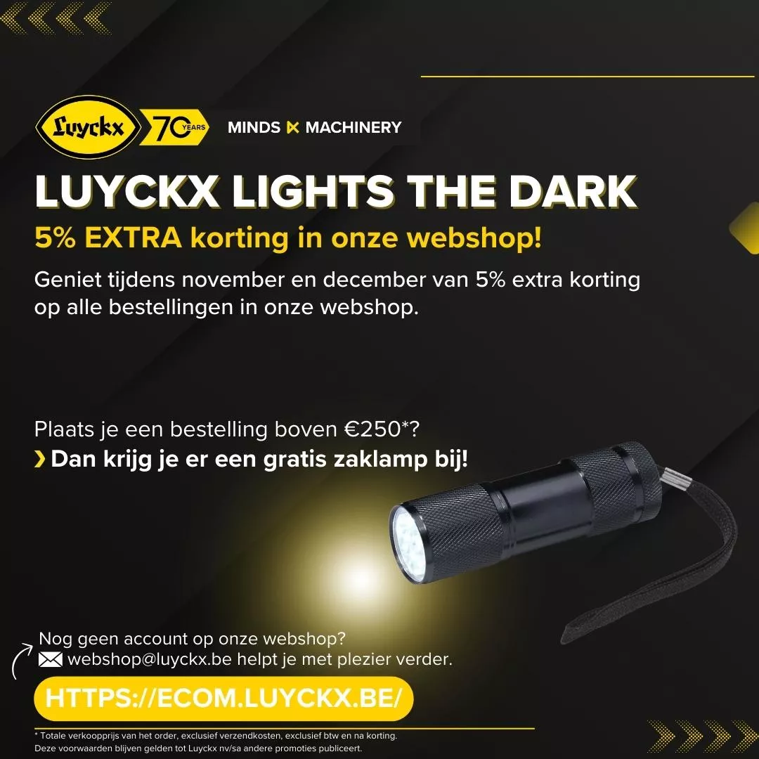Luyckx lights the dark : 5% de réduction supplémentaire sur notre webshop + lampe de poche gratuite*
