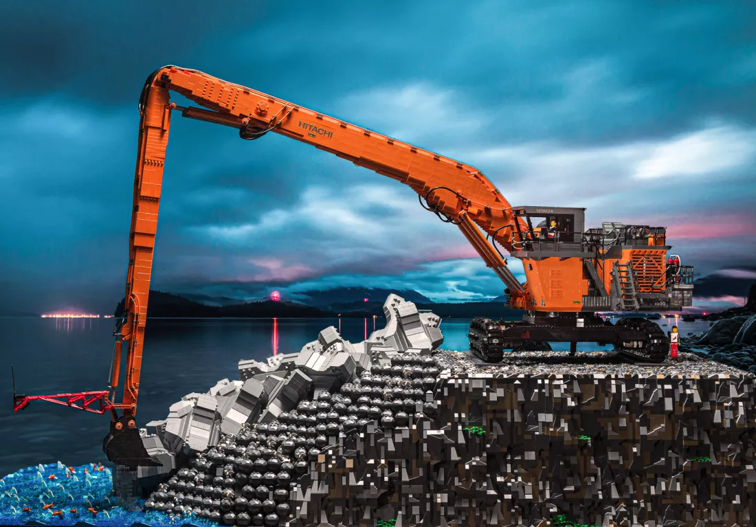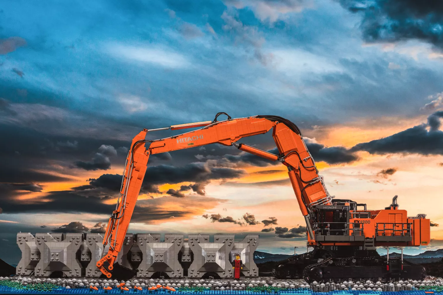 Plus loin dans notre entreprise, nous pouvons admirer un EX1200-7 avec une flèche en deux parties qui se compose de 24.140 briques et a pris 256 heures de travail pour être construit.