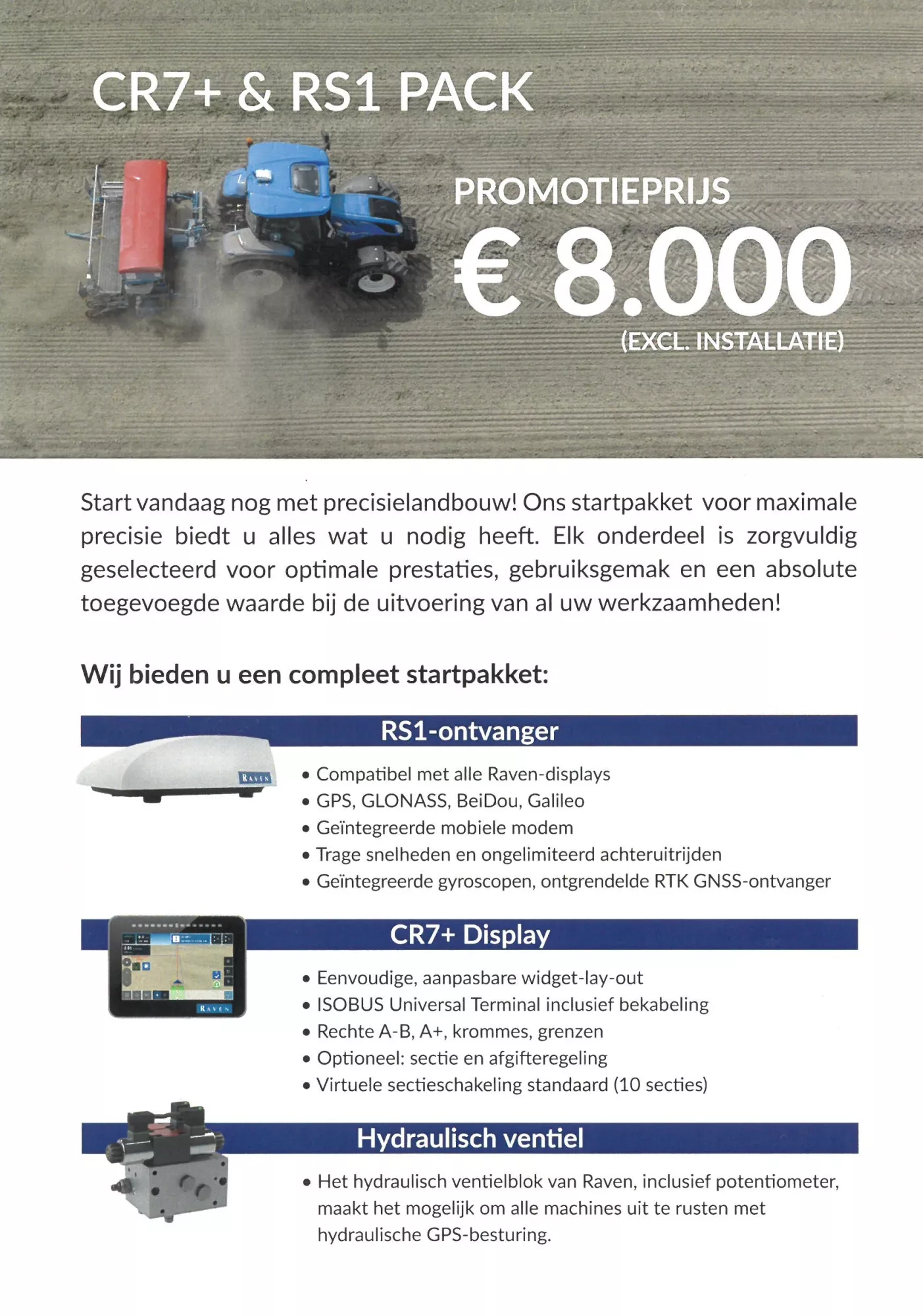 lundi 25 août 2025Profitez de cette offre jusqu'à la fin de l'année : écran CR7, récepteur RS1 RTK et distributeur hydraulique pour seulement 8 000 € (hors TVA, installation et flexibles hydrauliques).