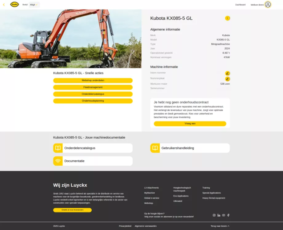 Ontdek jouw gepersonaliseerd klantenportaal, de centrale plek waar je onze volledige digitale dienstverlening terug kan vinden. Toegang tot het fleet-managementsysteem, keuringsdocumenten van jouw machines, parts manuals en operators manuals – alles digitaal en overzichtelijk op een intuïtief platform.