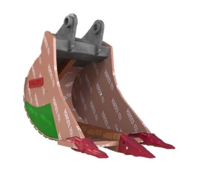 De ripperbakken van Corazza zijn uitgevoerd met een centrale ribconstructie en is speciaal ontworpen voor het loswrikken van blokken en het werken in extreem harde grond. De volledige bak is vervaardigd uit HARDOX® 450 en versterkt met HARDOX® 500, wat zorgt voor maximale sterkte en een lange levensduur.