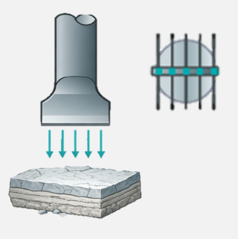 - Ideaal voor reeds gebroken materialen of niet volledig massief materiaal (om stukken verder lost te maken)