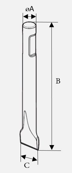 Een spadebeitel (asfaltbeitel) heeft dezelfde werking als een platte beitel, maar heeft gewoon een langer breekvlak.