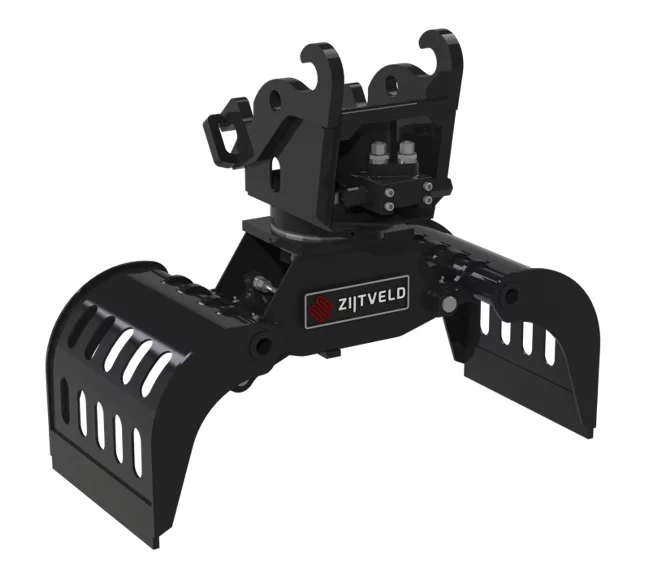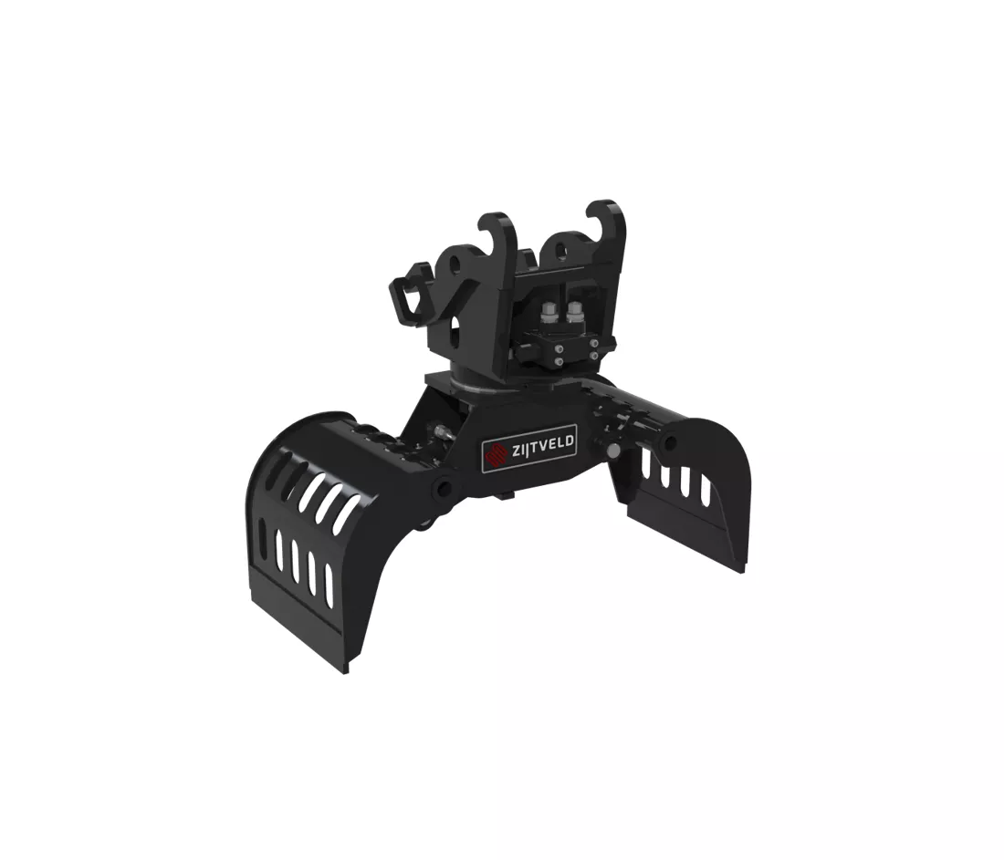 De Zijtveld S75-D is een compacte en krachtige sorteer- en sloopgrijper, speciaal ontwikkeld voor mini- en compacte graafmachines van circa 0,8 tot 1,5 ton. Dankzij zijn 360° hydraulische rotatie en solide draaikrans biedt deze grijper maximale controle en precisie, zelfs in krappe ruimtes.