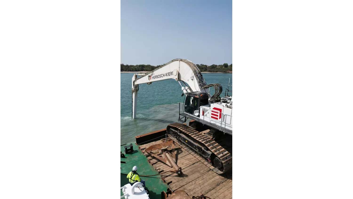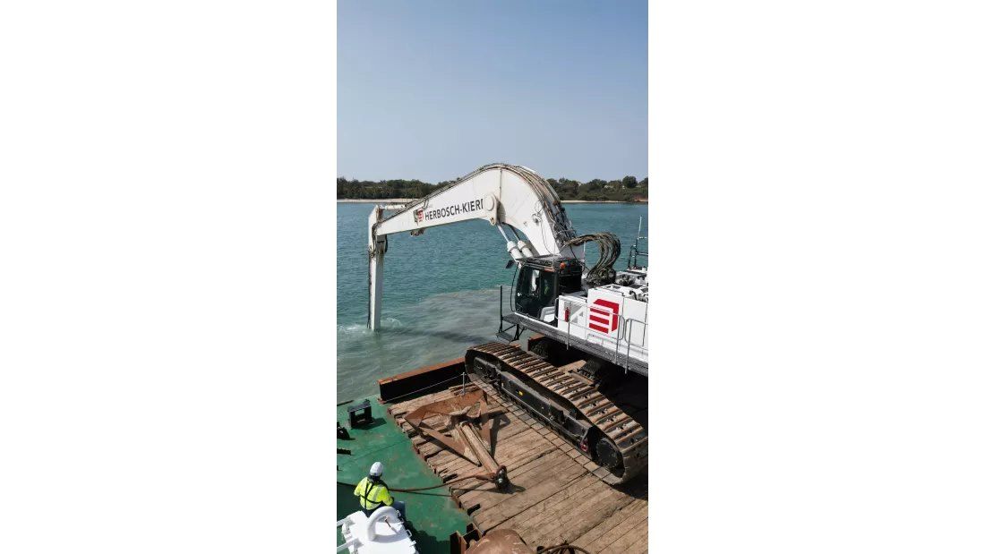 vrijdag 13 februari 2026Voor de installatie van een 31 kilometer lange elektriciteitskabel van 225 kV werden twee Hitachi ZX890-7 graafmachines ingezet. Vanaf het Herbosch-Kiere-ponton Gaverland groeven deze machines de twee kabels in op zee, uitgerust met een 21 meter lange super long front. Aan landzijde werden de kabels verder getrokken en gepositioneerd met behulp van de krachtige Hitachi Elephant‑graafmachine.