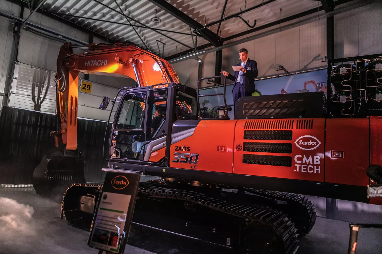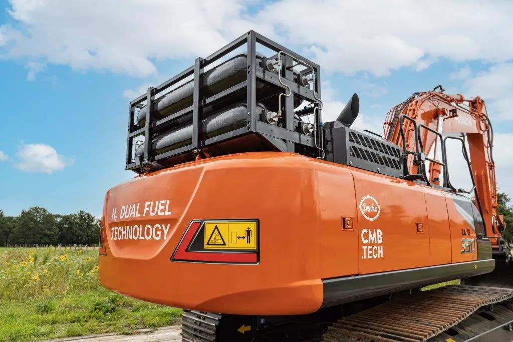 De Hitachi-dealer bouwt de machines op eigen initiatief om, het is geen fabrieksoplossing. Men zocht hiervoor de samenwerking met CMB.TECH. 'Net als wij een familiebedrijf met korte lijnen', zegt Luyckx. CMB is te zien als de ontwikkelingstak van een grote rederij. Het werkt aan oplossingen om met waterstoftechniek de eigen vloot zeeschepen schoner te maken, en richt de pijlen ook ander materieel. Sinds tien jaar bouwt het bedrijf ook bedrijfswagens om naar dual-fuelwaterstof. Als een ander wapenfeit zijn enkele New Holland trekkers omgebouwd met dezelfde techniek; deze machines zijn verkocht en draaien onder andere ook in Nederland.