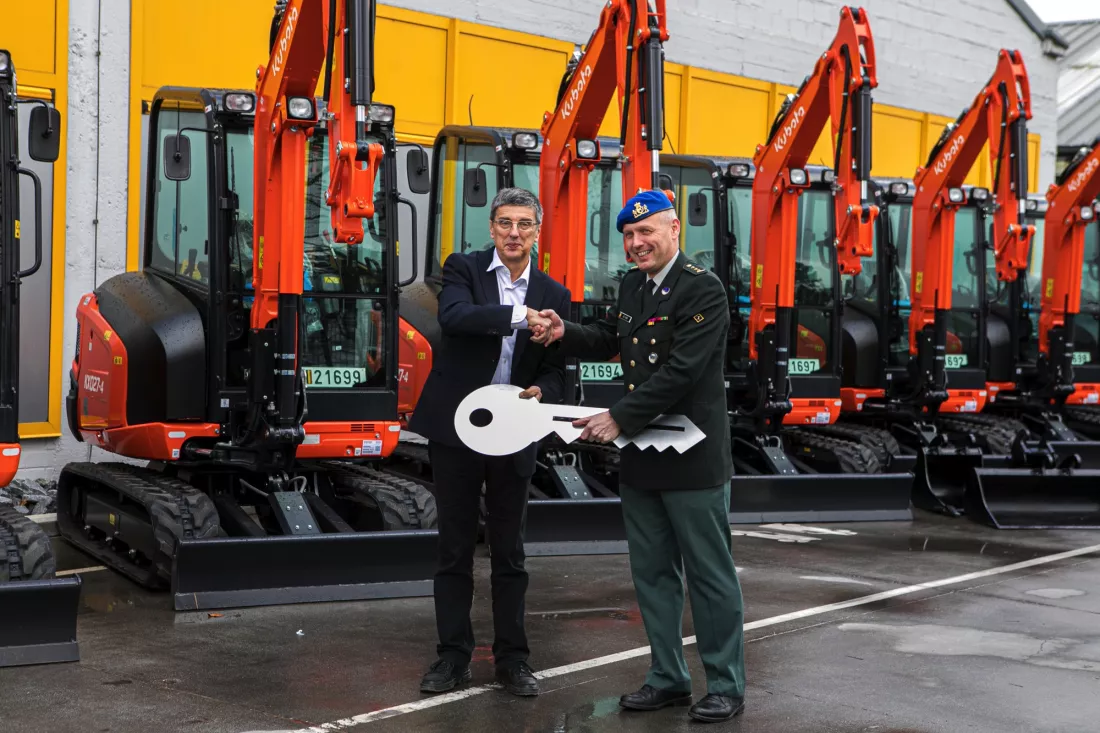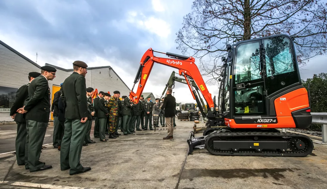 dinsdag 4 februari 2020De eerste ‘renting’ voor constructietuigen binnen Defensie is een feit. Begin februari ontvangt de Genie de eerste sleutels van de acht nieuwe minigraafmachines van het type KUBOTA KX027-4 2,7 ton. De ‘operationele lease’ die in de bouwsector beter gekend is als ‘renting’ omvat het gebruik van de tuigen, een onderhoudscontract en diensten gedurende vier jaar bij de firma LUYCKX.